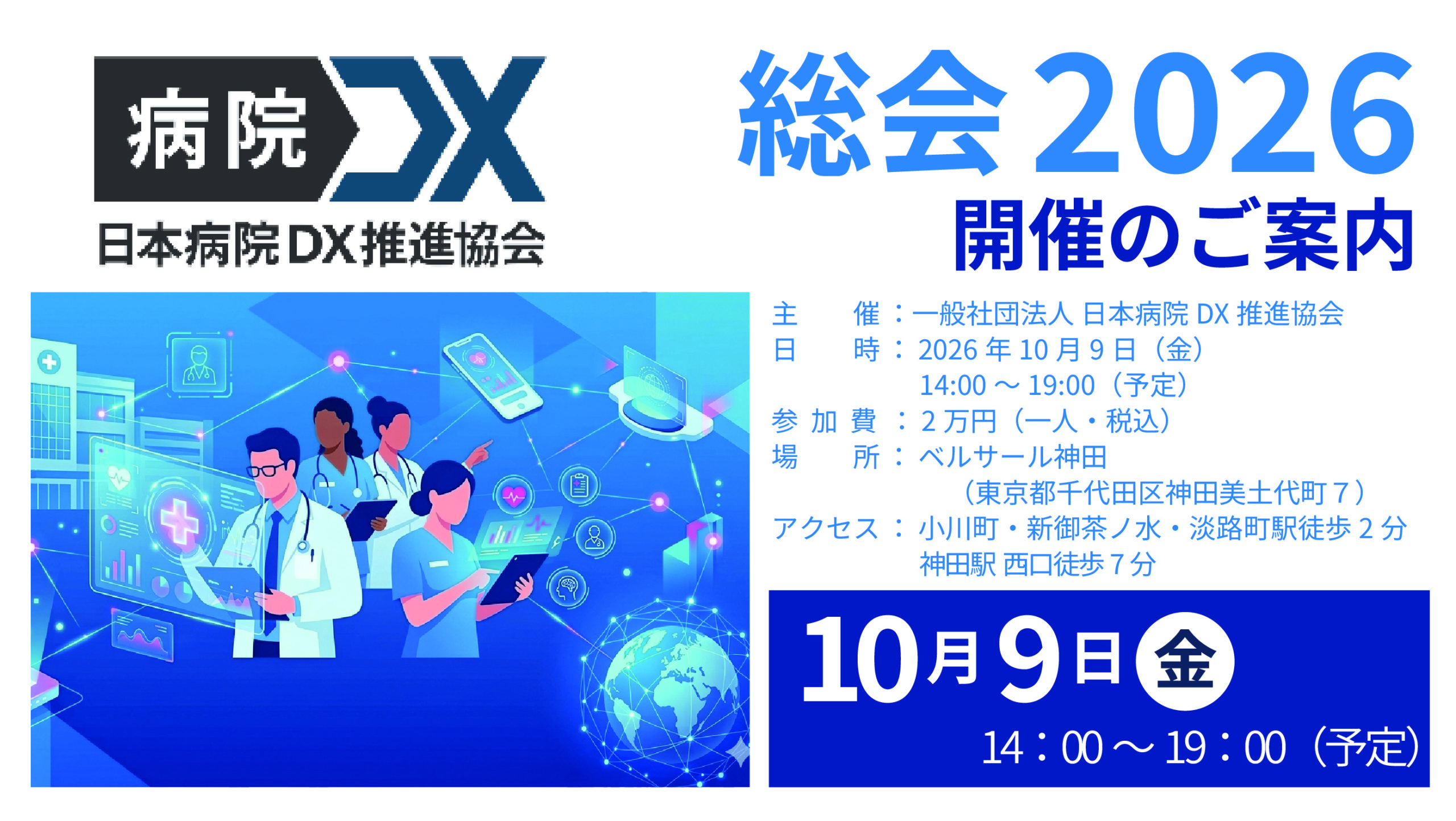 本協会は、ICTをはじめとするデジタルツールやAI活用を促進する病院の構造変化や働き方改革にあわせて生じる課題に関して、医療従事者や患者により高品質な医療サービスが提供できる価値創出のための情報提供や病院と企業の連携を促進させるフレームワークを構築します。